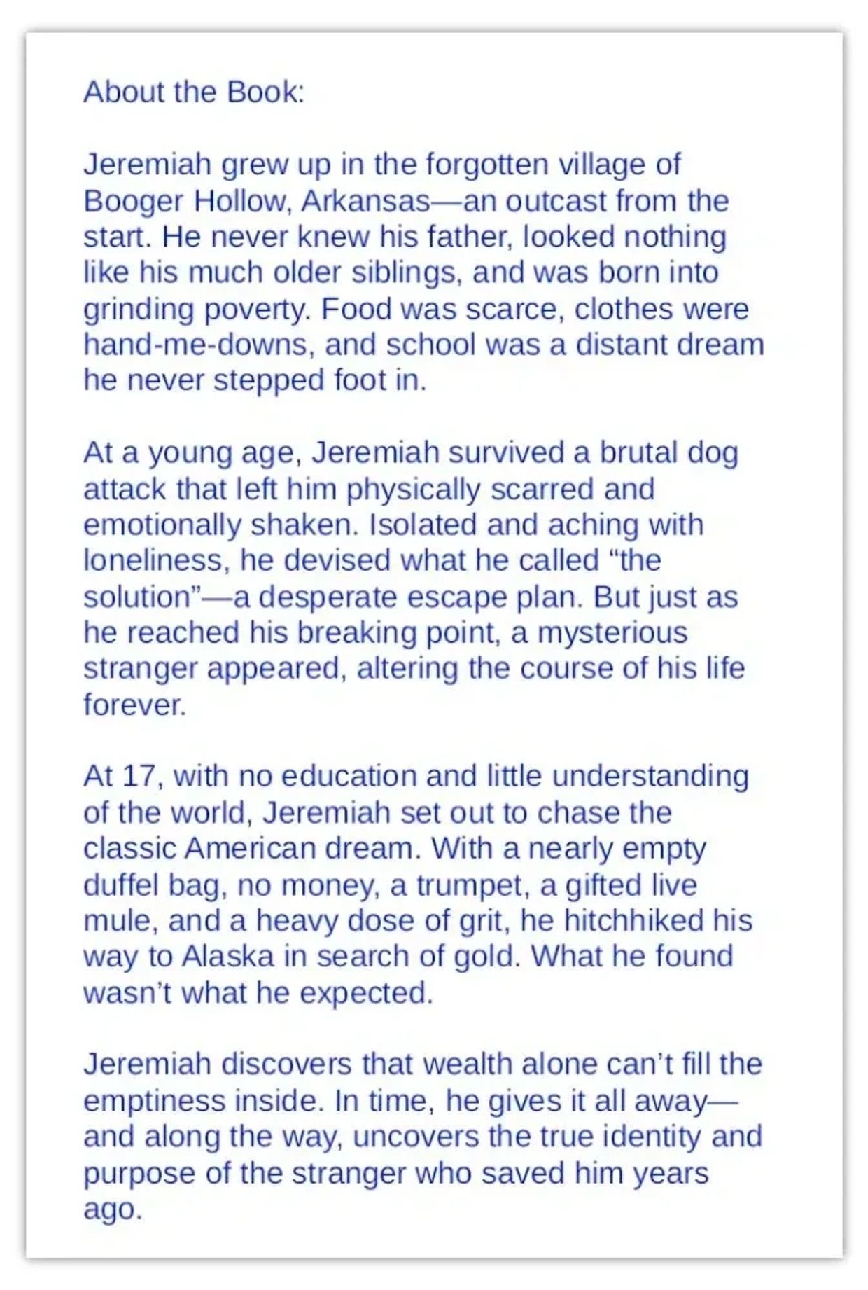 America’s storyteller from Alaska, Gary Bryan Jones, invites readers on an unforgettable journey with his newest adventure novel, The Man from Booger Hollow! Freshly released and now available, this captivating tale is written for readers of every age—an adventure you won’t want to miss! One hundred percent of the proceeds from the sale of this book goes to The Alaskan Gardens!